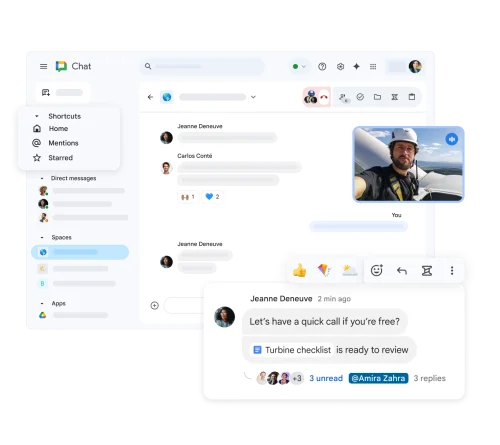 En tiempo real y en cualquier momento: Chat ayuda a los usuarios de Workspace a conectarse y colaborar para completar sus tareas.