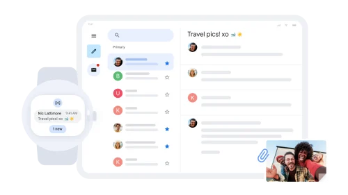 Gmail está disponible para computadoras, teléfonos, relojes y tablets, para que puedas conectarte en los momentos más importantes. Puedes contar con que la infraestructura global resiliente y segura de Google mantendrá el servicio disponible día y noche.