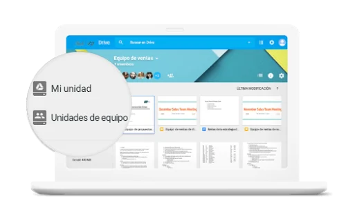 Use unidades compartidas para almacenar el trabajo de su equipo en espacios compartidos seguros y fáciles de administrar. Los miembros comparten la propiedad de todos los archivos que se agregan a las unidades compartidas, por lo que todos se mantienen informados.